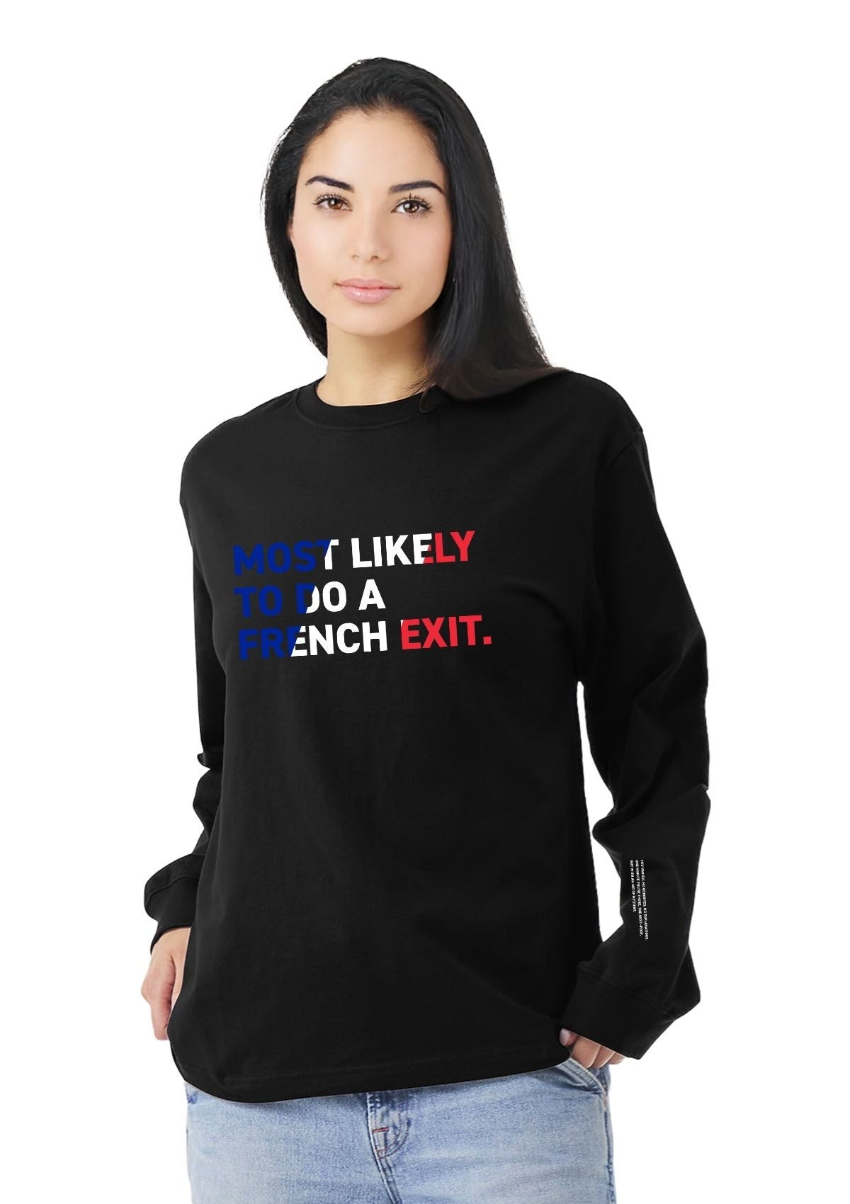 The French Exit Tee celebrates the effortless art of leaving without fuss. Equal parts witty and wearable, it’s your go-to tee for nights out, parties, and gatherings where your presence is remembered—long after your departure. Add it to your Exit Club lineup today.